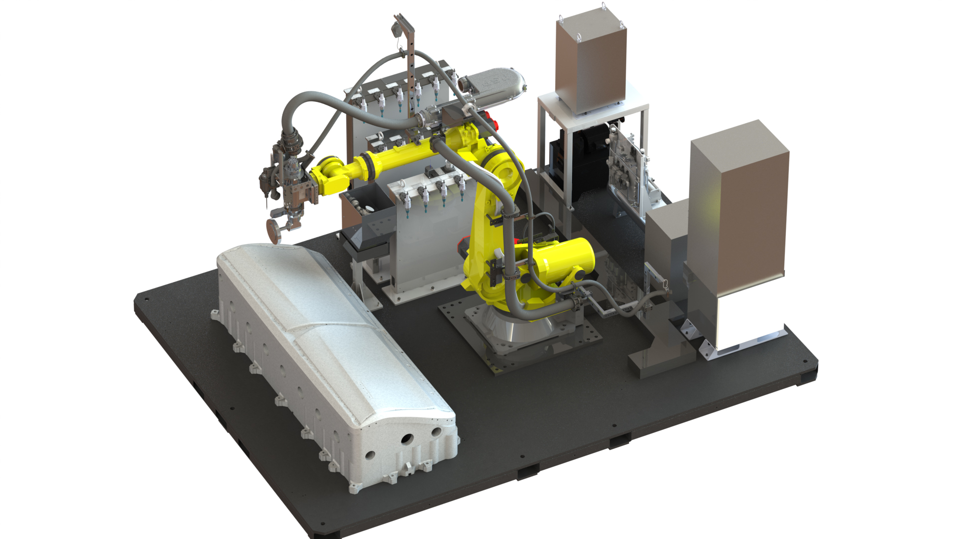 標準系統采用模塊化思想,將整個單元中配合機器人實現不同功能的模塊進行拆分,供客戶根據實際工藝流程選配,亦可單獨銷售。產品涵蓋了打磨,去毛刺,弧焊,點焊,鑄件后處理以及噴涂系統。